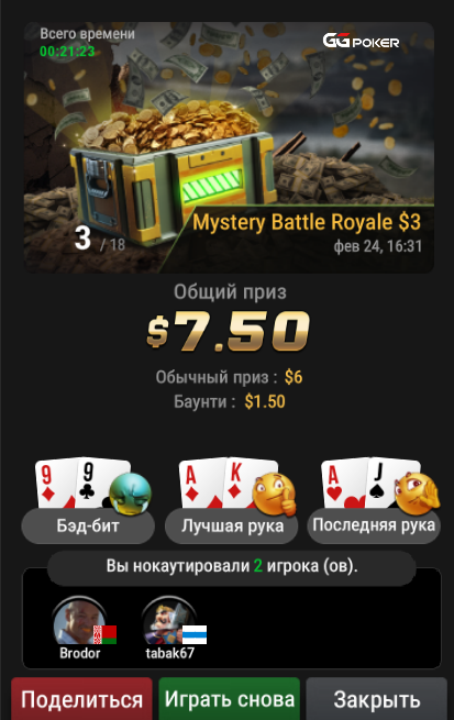 Только что закончил сессию из 6 столов(1 итм, итого: минус 3 баина). Но не могу я закрыть клиент в минус 3 баина. Кто лудоман тот знает. Регнул сразу 3 мистерии. Дали золотой сундук, правда самый минимальный -15$. А еще один на 100$ -  упустил😅. Как вы считаете, нужно было заходить с 22? на 1700 фишек? Я не очень люблю коллить с лоу парами. Запушить - да, но откалывать мне сложно дается. И не хотелось терять стек, играл на победу. А по итогу 100ка ушла другому. Но вот интересно. А если б я выбил - рил бы 100ку дали? Или это все рисовка. Ибо я за эти 3 стола сундуков 10 насобирал и пустые бляха 🤣🤣 Ну два топа забрал