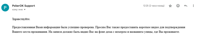 Обработав вашу заявку, ПокерОК передаст информацию платежному провайдеру. В большинстве случаев поиск платежа займет не более нескольких дней, но в редких случаях может затянуться до нескольких недель. Пожалуйста, не отправляйте повторные запросы в саппорт чаще, чем раз в несколько дней, это не ускорит процесс. Спасибо!