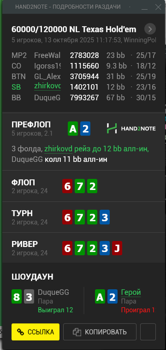 Вышел на финалку 8 стеком и вылетел АК<QQ, но турнир в целом неплохо складывался, но в концовке маны немного не хватило 😊