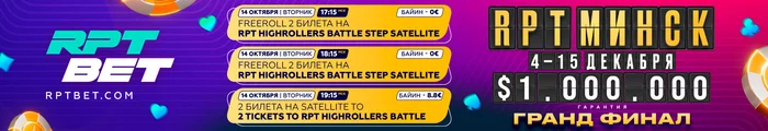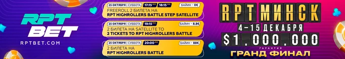 💻 При поддержке онлайн-рума RPTBET! 120+ билетов и пакетов с проживанием в онлайн-сателлитах!