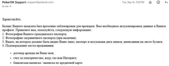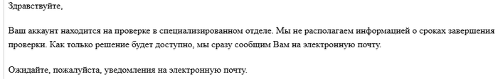 Всем привет! Пишу в первый раз. Я вообще не любитель писать посты, но тут просто накипело! И очень требуется помощь!!! Началось все 16 сентября. Мне на ГГ заморозили баланс для проверки.