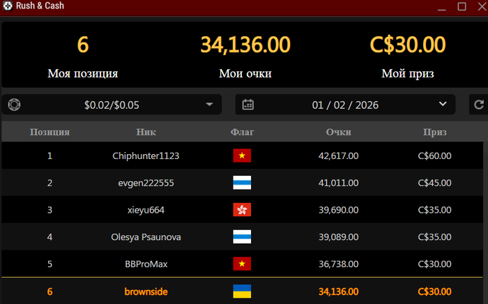 лидерборд: +30$