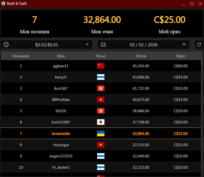 лидерборд: +25$
