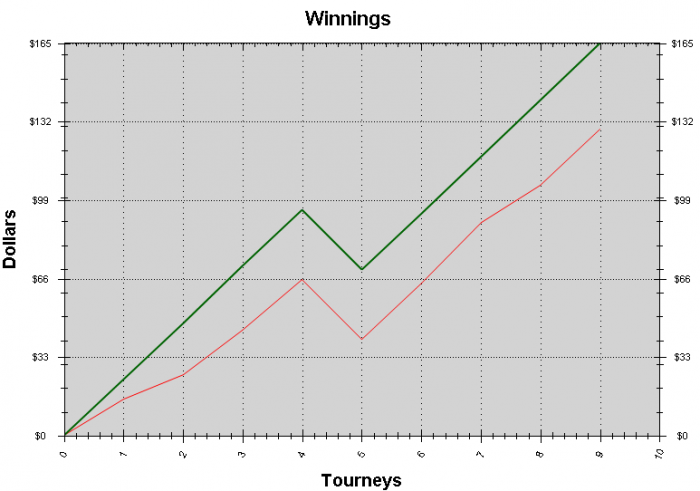 День №10. Всё отлично, всем доволен, кроме концовки в кейке. Сначала начал подсаживаться местный сильный рег, проиграл один раз по своей вине и два сравнения(итого -3БИ) + проиграл финал шутаута, обидно немного было так заканчивать. Но 4 часа рабочих вышло, да и устал я, так что продолжим завтра.
