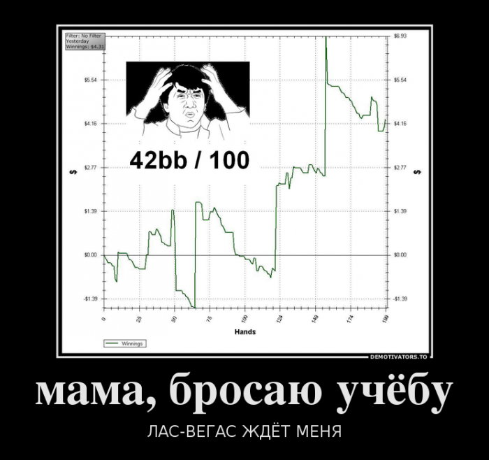 Последний 10 месяцев больше стараюсь играть ХА, за первые пол года с нуля наростил БР 3.5к$ играя все подряд. Потом по жизненным потребностям + даунсвинг в омахе поймал по этому от БРа осталось очень и очень мало, долгое время не мог наростить БР из-за тильта, даунсвинга и других мелких проблем...