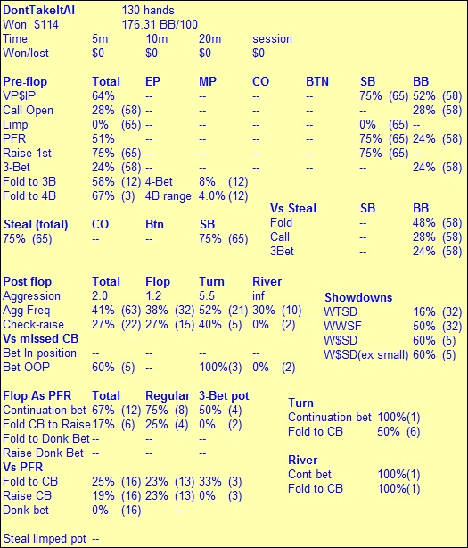 Согласен изи выставление, но конкретно этот игрок очень палился таймингами, и когда получил ч\р, заподозрил что-то не ладное т.к. он обычно ставил бы по флопу дрова, сеты и 2 пары, и решил поблафкатчить с целью выставится на абсолютно любом терне. Ну и как видишь, действительно был прав)