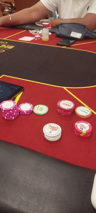 В казино через мобильный банк не принимали даже оплату за вход. Вход по тарифу Poker Package стоит 3500. Туда входит еда и напитки с ограничениями, относительно премиума, випа, и прочих. Прелесть такого тарифа в том, что отыграв в покер 4 часа либо проиграв свой байин, ты можешь вернуть эти деньги в кассе. Я занял у товарища 5к и записался в очередь. В это время проходил кеш фестиваль. По большому счету мероприятие это ничем не примечательно, кроме удорожания игры и увеличения количества столов. Вместо будничных 200-300 игралось 200-500. Очередь подошла быстро. Состав был неплохой, в меня довольно быстро вгрузили пару стеков, и я пошел перекурить.