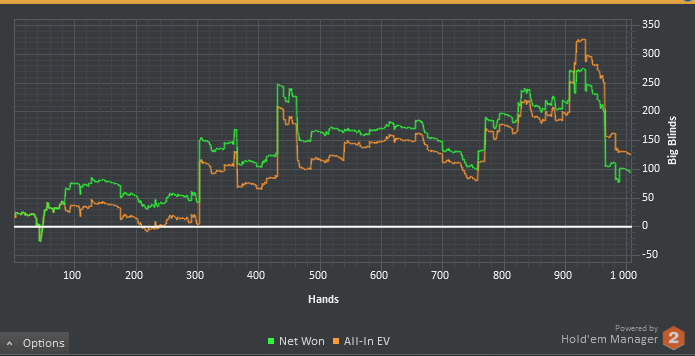 Как итог, как раз эти 100 рук забрали полтора стека)