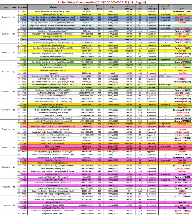 - в 18:00 финальный сателлит по 4500р., гарантия 2 билета по 35.000 рублей.