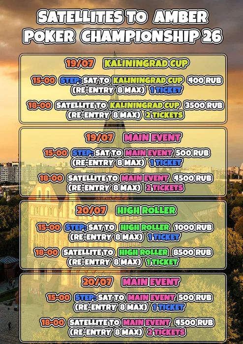 - в 2️⃣0️⃣:0️⃣0️⃣ финальный сателлит по 3500р., гарантия 2 билета по 25.000 рублей.