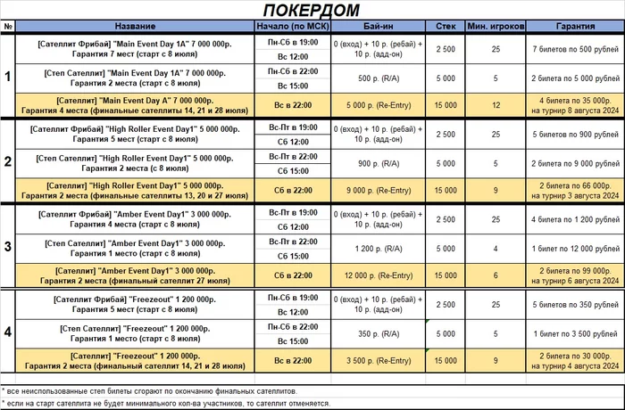 - в 2️⃣0️⃣:0️⃣0️⃣ финальный сателлит по 4500р., гарантия 2 билета по 35.000 рублей.