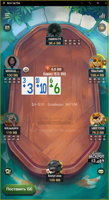zarathustr4 @ 07.12.25Понятное дело, так выглядит не прям каждый стол без исключения, тут я вам показал самые толстые и сладкие. Но, в среднем, ты комфортно сидишь за столом с 2-мя випами, 2-мя челами, которые играют, как им вздумается, и с редким регуляром. И так каждый день. В целом, меня очень даже устраивают такие будни.
