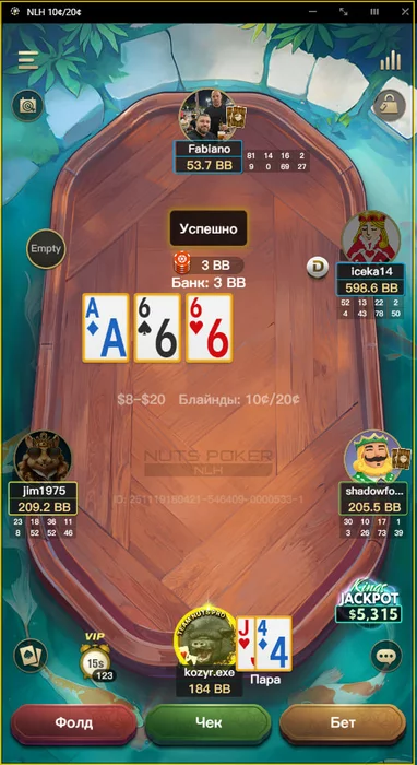 nl10. Успел-таки заскочить на пару раздач, пока ждал очередь на другие столы