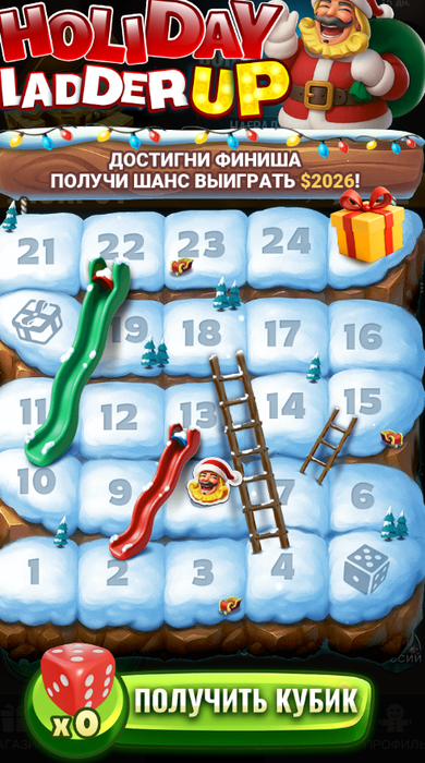 Тем более, что сейчас там стартанули довольно прикольные новогодние акции. Начиная с фрироллов с общей гарантией на 6к$, заканчивая забавной, незамысловатой бродилкой, где выполняя простые ежедневные задания и бросая кубик, можно добраться до главного приза в 2026$.