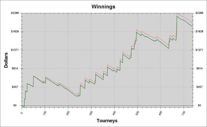 Сыграл около 300 штук, просадка была около 30-40, точно не помню, но это 3 сессии максимум с 1 мелким итм в каждой.