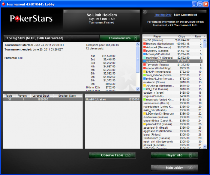 С июня 2011 пробую себя в качестве регуляра, играя 15-20 турниров в день.