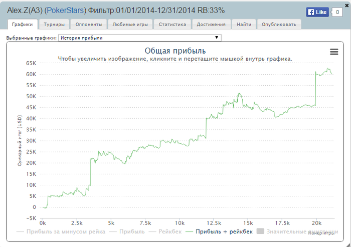 Вот и наступил последний день в 2014 году. Год был не самый легкий, в июне всё-таки закончил университет, получил диплом) Теперь можно по настоящему гриндить. В покере год выдался лучшим по профиту с путевкой на багамы около 60к вышло Это с учетом того что много дипов не складывалось...)и доездов крупных больше 15к не было... хотя было очень много шансов) ну ничего, рано или поздно это случится. Теперь про марафон) Начало выдалось конечно совсем печальным, за первую неделю улетел на пол бра в минус, потом еще за неделю почти в ноль все слил( Такого вообще никак не мог ожидать... и серьезно думал о том чтобы завершить марафон, так как был в прямом смысле на дне.... Поэтому хочу сказать огромное спасибо своей девушке, которая в трудные минуты была со мной рядом и поддерживала меня) А так же всем вам, тем кто поддерживал, читал, ставил плюсики, ведь это всегда приятно, хочется идти только вверх и достигать своих целей, говорю спасибо, ведь большая часть это ваша заслуга.... Всё это мотивировало меня, и не давало мне просто опустить руки... По ощущениям как будто марафон играл не с 5к до 15к, а с нуля и до 7к)) общий график с начала