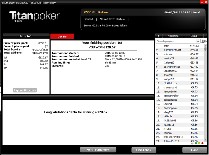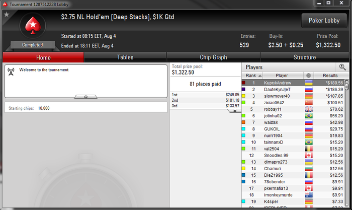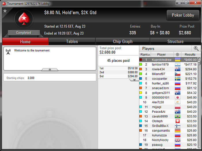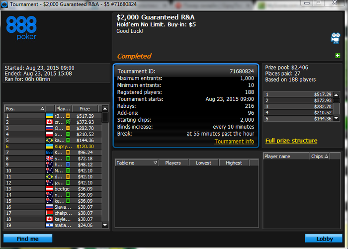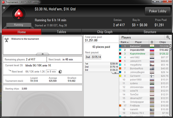 После алкотреша (хотя он длился один день, след 2 я просто пил чай и играл футбол с теми кто остался в адеквате) получилось посидеть, собраться с мыслями и разобраться во всех своих штуках дрюках. Эти штуки дрюки порой меня насилуют, вопше я человек настроенния...о Заебись а потом бац и уже я в печале.....Но! Все таки база то есть и остыв, понимаю, что все хники с моей стороны делают мне только больше проблем. Там + а там -, там что то не правильно сделал а там вколил с блефкетчером и проиграл. Ну сделаю я этим покером деньги, получиться у меня выйти на хороший уровень - значит тому и быть, а если нет - ну в мире ж полно других вещей. А то получаеться как в анекдоте. Вокруг одни катраны и заводы?