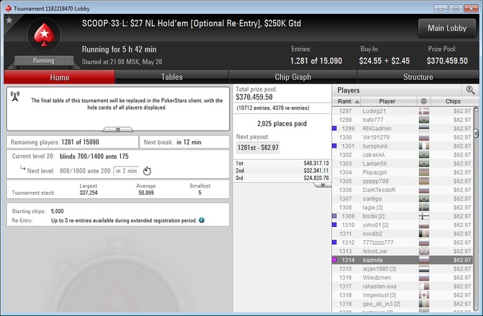 bazinda, если ты задумываешься о фолде АК в этой ситуации, когда он имея самый короткий стек открывает из МР с 12бб, а у тебя 2й стек с конца, то он на тебе будет печатать деньги. Да, если есть нотс, то можно подумать над решением, но, думаю, что это легкий пуш.