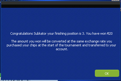 Subkato wins $7.79 USD from the main pot with three of a kind, Aces.