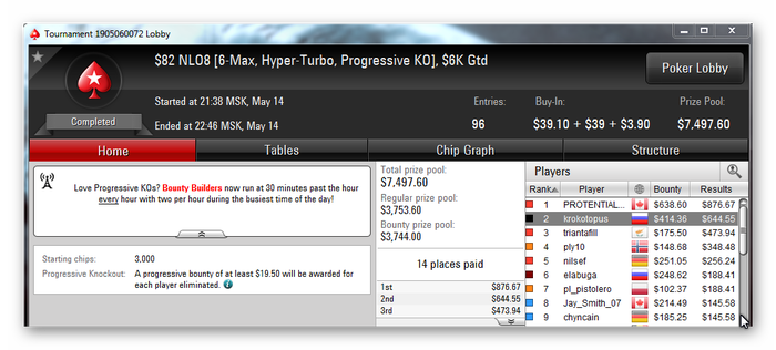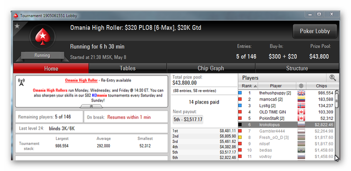 Poker Stars $1000+$50 Pot Limit Omaha Hi/Lo Tournament - t160/t320 Blinds - 7 players -