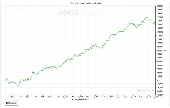 Почему я не играю 60? Потому что с лета на них стрик никак не отпускает. В ноябре я пытался их играть, откатал 800 игр с чип ев 10 и бросил нафиг. Творился там просто форменный дурдом. У меня уже некоторый комплекс на эту тему. Так что, не смотря на то, что 6000 игр на 60 даже с 35 фишками более профитны, чем 6000 на 30 с 45, я поиграю именно 30 без сильного риска испоганить себе настроение перед январским отдыхом. А вот уже в конце февраля можно будет попробовать снова закрепиться на лимите выше.