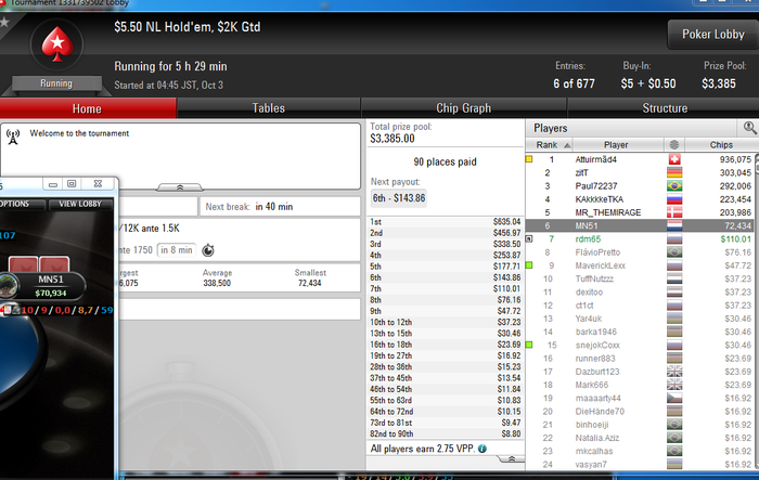 2) Poker Stars $50.00 No Limit Hold'em - 6 players -