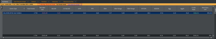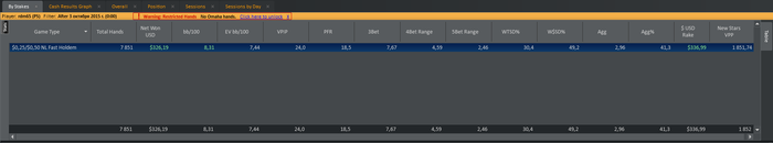 CO: $155.99 - VPIP: 20, PFR: 16, 3B: 6, AF: 1,9, Hands: 910