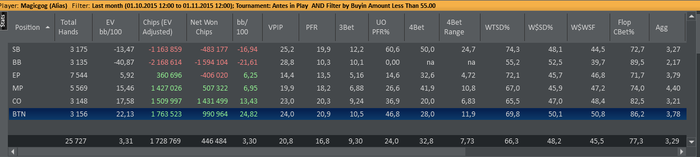 2. при рассмотрении вопроса завышенного контбета, мы часто будем сидеть в позе (у нас же высокий стил с катоффа или баттона) и тогда по идее надо смотреть не на чек-фолд, а на чек бехайнд, вот он у меня великоват - около 60.