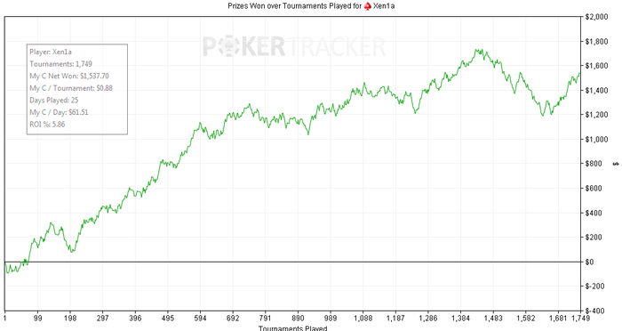 Впервые, чувствую себя просто настоящим регом-трудоголимком. Играю много и по кол-ву турниров, и по кол-ву дней. За 2 недели бывают 2 выходных обычно.