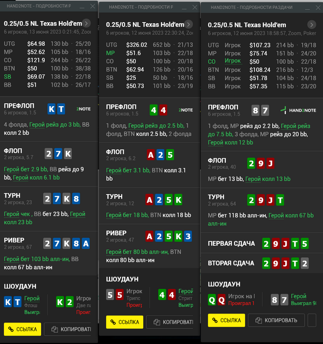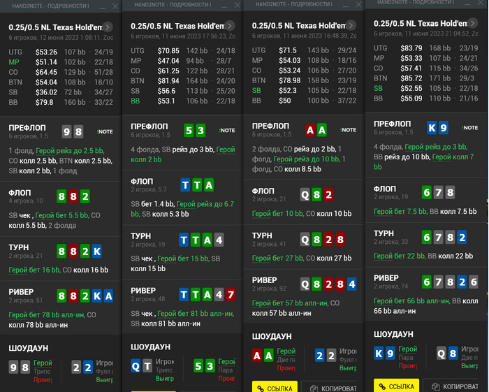 В завершение поста, делюсь с вами подборкой интересных раздач из H2N за последние дни катки: