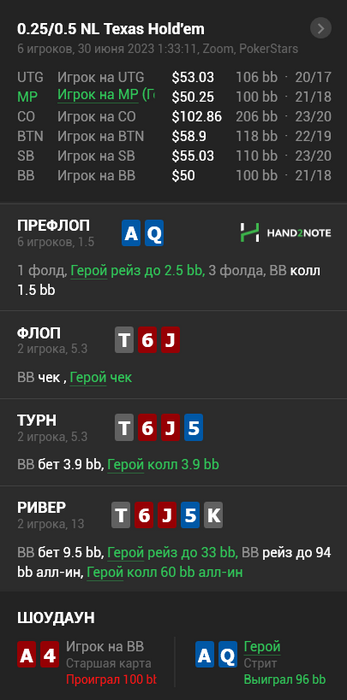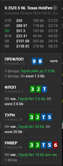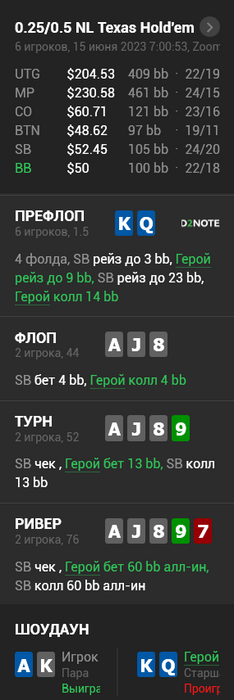 P.S. Кстати, в Zoom50 по моим подсчетам через H2N оплачиваемый мною рейк составляет 5,5bb/100, в Zoom25 - 6bb/100. Вроде и совсем немного, если так подумать и с другими площадками сравнить 😏