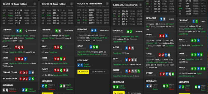 С одной стороны, порадовали составы в зум50, особенно в первой половине дня, когда еще минимально всё регами забито. Также хорошо складывалось в префлоп-оллинах, что есть того не отнять. С другой, было очень много тяжелых неприятных ранаутов, из серии когда я ставлю 4бет и к моим АА-КК выходит борд QJT, или оппонент под мою оверпару в 3бет поте ловит 2пары+. Также не прошло несколько дорогих блефов, я даже засомневался надо ли было их делать, но опытные люди говорят всё ок, так что я расслабился 😅 Играю за тремя столами, чтобы было максимально вдумчиво, за четырьмя уже стратегия очевидно начинает сбоить.