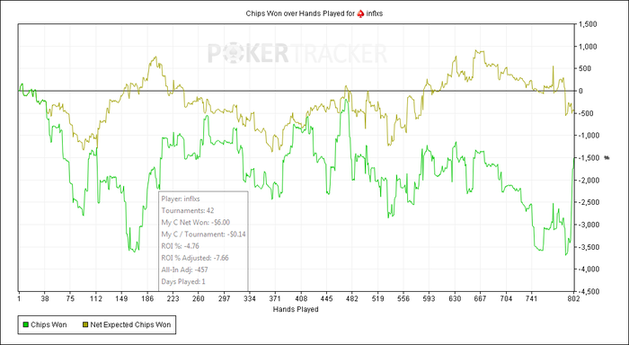 inflxs, если опп знаком и мы знаем что он фишной почему тогда не проявить агрессию на пре флопе, по флопу с попаданием и тем более с я бы ставил 60-70% от пота, а вот по терну ставил бы уже 35% и ривер чек \ пас, интересно а какой диапазон открытия у оппа?