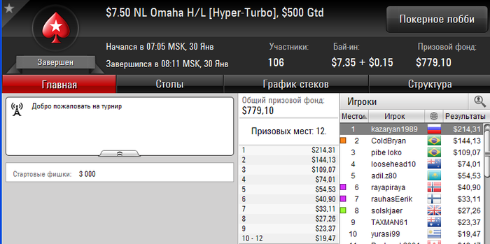 JeksonTuk, Чет пока на ПС не плохо катается))) Скоро буду и в ПД активно играть. Комп в скором времени поменяю, а то лагает, когда 2 рума параллельно играю. Не очень приятно.