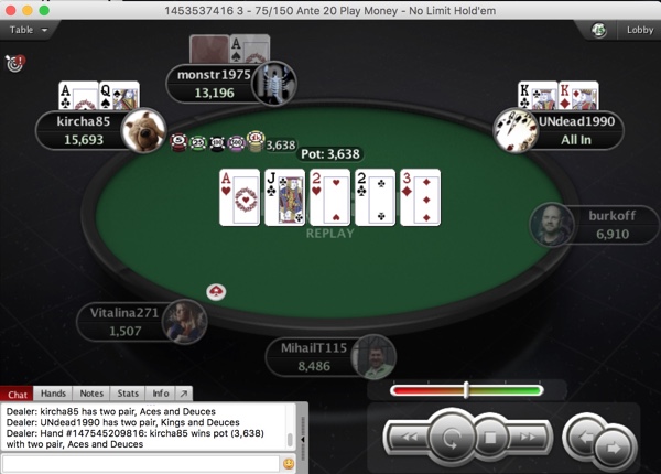 Потом Карпик удачно поймал две пары против "MihailT115", а буквально следующей рукой выбил земляка "UNdead1990" c против :