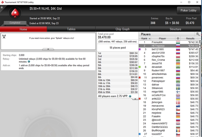 - Дистанция 2000 турниров, блоками по 500. Пакет играется с мейкапом. Фризы не турбо до 22, ребайники не турбо до 12