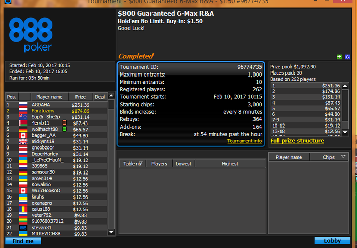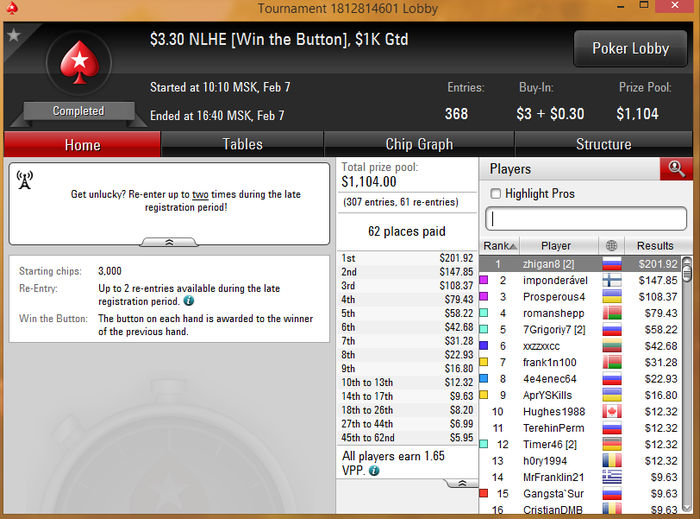 burigat, более прибыльные турниры это турниры с где играет меньше народа (имеешь больше ожидания для победы). в еврорумах поляна слабее , чем на PS и 888.и в турнирах там участников меньше.Чтобы узнать как часто я дохожу до призов можешь забить мои ники в Шаркскопе, он тебе все покажет.