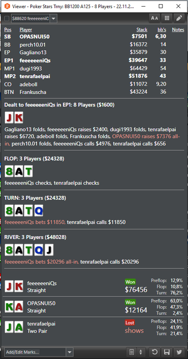 Как можно настолько убого сыграть я не знаю, и у этого молодого человека профит 6к. Были еще какие-то смутные моменты, но нет желания их искать. К чему я собственно веду, казалось бы, зачем помечать человека сильным регуляром с такой игрой? Совершенно незачем. Именно поэтому я помечаю оппов исходя из того как они играют, а не из их профита.