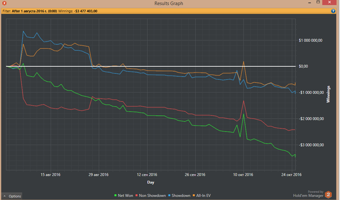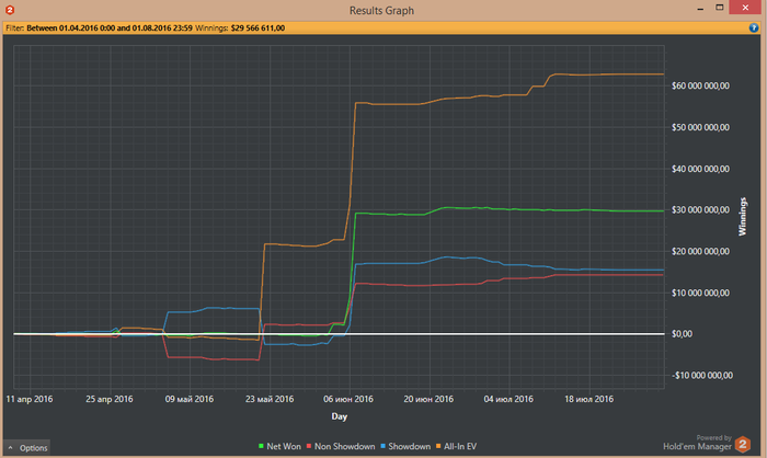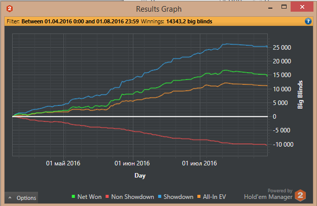 По просьбам трудящихся так сказать ))) Итого вывод такой раньше мне аппало, а сейчас просто не доезжает, судя по тому, что линия net won ниже линии EV )) и все равно