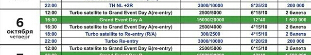 В 16:00 был запущен турнир Grand Event день А гарантия 1500000 Со старта присело 27 человек, народ постепенно подтягивается! Напоминаю, поздняя регистрация в течении 8 уровней по 40 минут, игра продолжается 12 уровней.