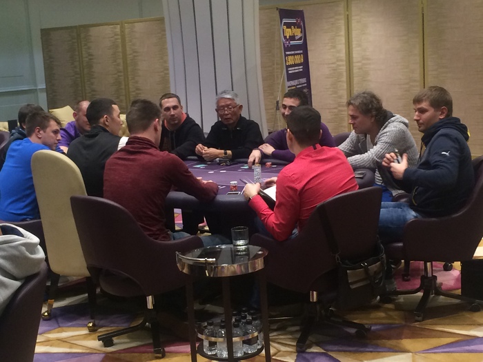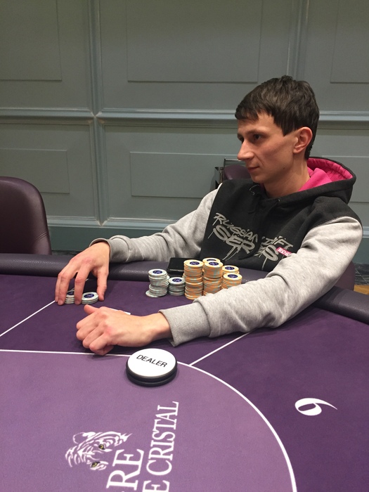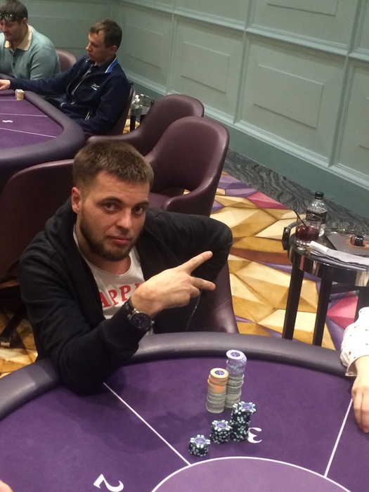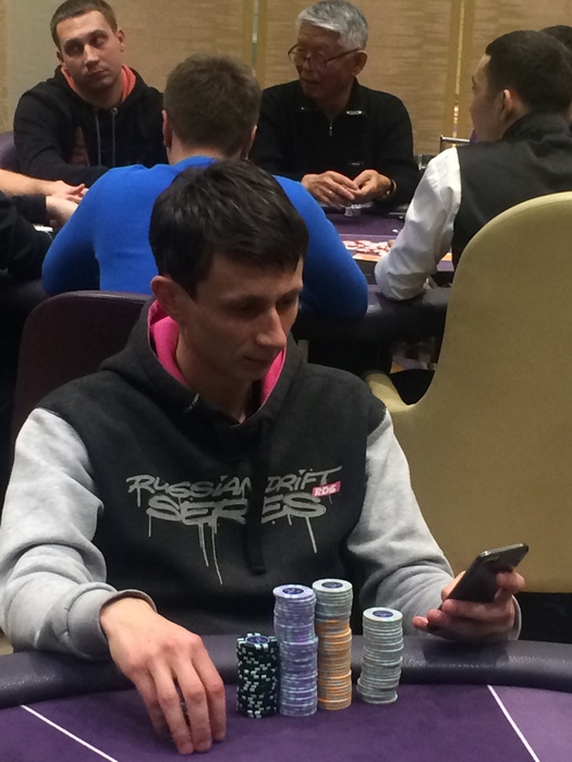 В турнире Main Event идёт 11 уровень (1000/2000/200). В игре осталось 14 участников. Общее кол-во фишек в игре 1.050.000 Средний стек 75.000 У чип лидера в районе 200.000 (фото) Роман Сторожук (Владивосток)