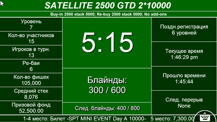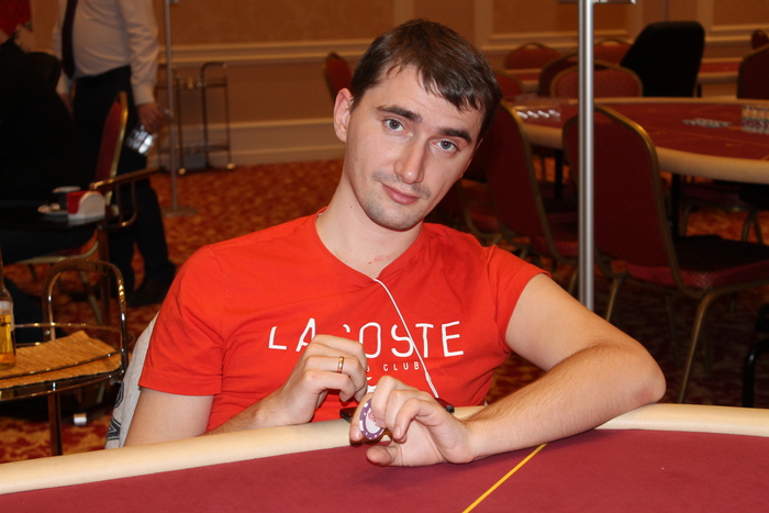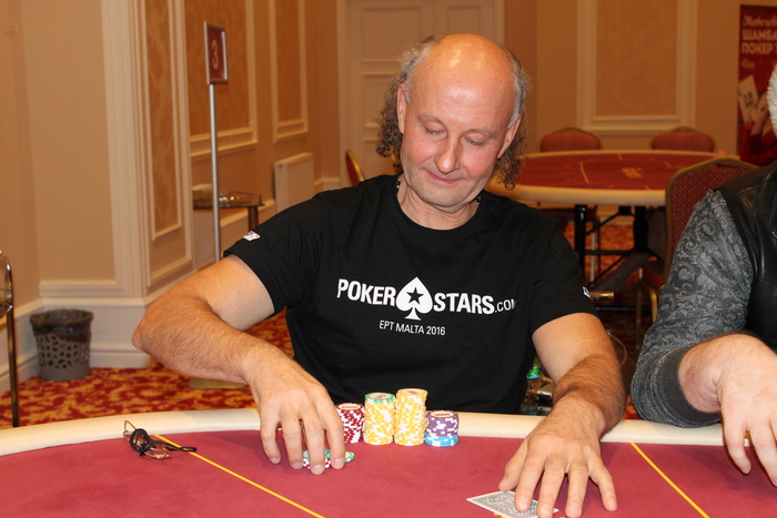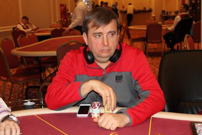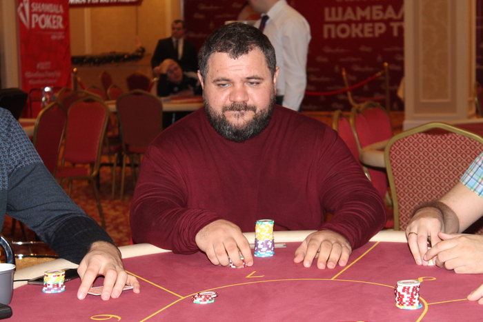 Александр Махиня с УТГ делает рейз 1,3К, Владислав Манькович на баттоне переставляет 2,8К, все пас, Александр колл, флоп , Александр чек, Владислав ставит 2,5К, Александр рейз 7,2К, Влад коллирует, терн чек чек, ривер падает Александр с первой руки ставит 15,6К, Влад, после раздумий играет колл, и Александр открывает натц , Влад в темную сбрасывает.