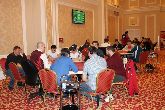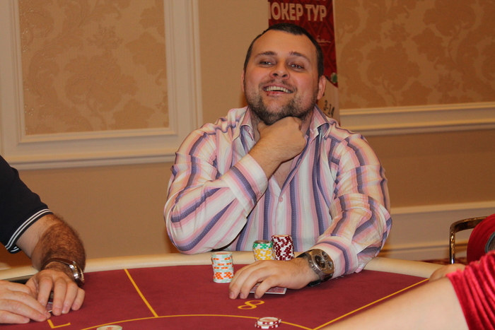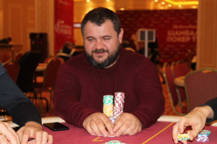 Стол №1 Олейник Вадим делает рейз 25К, Машонский Дмитрий алл-ин 33К на , Фроленко Денис ставит свой алл-ин на , Вадим пас, флоп , терн , ривер