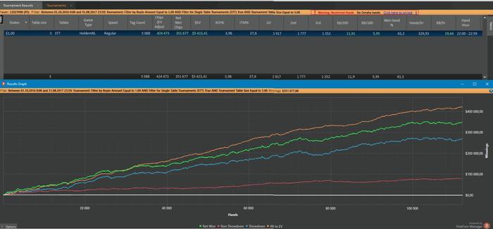 Odd_Capybara, По этой причине премиум хады h2n я не покупаю, поскольку глючность h2n вижу давно. Твоя задача -потроллить мне тоже давно понятна. Успехов в дальнейшем.. Умеешь ли ты думать, и читать то, что написано? - здесь вопрос БОЛЬШОЙ вопрос... Ну в этом тоже ничего страшного - 99% так живут. Верят в то, что им говорят, думают что там где то далеко сидит умный дядя, который не ошибается и даст им все, что им нужно. Король же всегда одет должен быть - правда?... По факту я сам не обращал на это внимание долгое время (поскольку априори считал, что штатный механизм считает правильно - это база, фундамент!) В основе любой дискретной статистической формулы лежит делить на N. Как думаешь, все обращают внимание на это N? Стал сравнивать с hm2 и задал вопрос, а почему мне так показывает? Я себе на этот вопрос ответил и теперь понимаю как сделать в этой проге статистически правильный стат на vpip или любой другой с учетом бага Плюс по факту мне h2n очень нравиться - сама идея и графическая реализация очень крутая. Ну к мат. модели внутри еще пока есть вопросы, как и вопросы к считыванию данных в тех же турнирах.