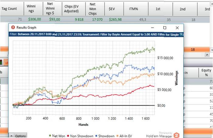 Глюки боюсь не в х2н, а в 40 см. Тебе указали на ошибку, а ты даже не попытавшись проверить, всё равно считаешь себя правым, и продолжаешь гнать какую пургу научную. Братан, чтобы забить гвоздь не нужно 5 часов решать уравнения из динамики, куда силу приложить, с какой величиной... Вот Стата: Вот Сложная стата: И всё работает без всяких делений на 100500. Возьми один турнир (его hh), создай чистую базу в х2н, загрузи турик туда, вручную посчитай руки и проверь результат. Если в отпуске уже был, то с этими багами наверное пора к какому-нибудь дохтору