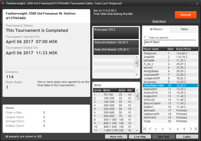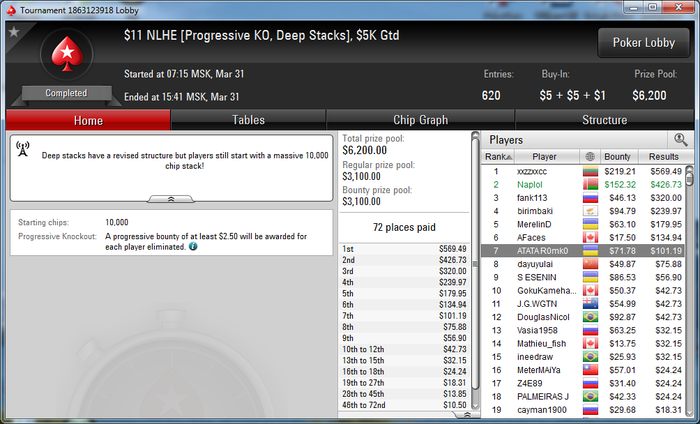 Несмотря на неплохой результат, нужно отметить, что складывалось просто ужасно в поздних стадиях, вообще ничего сделать не мог. По сути почти весь профит сделал один занос билдера за 5.5, где дали 730. Сыграно как обычно очень мало, не катал неделю в начале месяца, да и в принципе я катаю в среднем по 22 турнира в день, не представляю как можно больше, играю в пике 10 столов, но комфортно себя чувствую и четко понимаю ситуацию на каждом из столов играя 8. Хочется конечно выкатывать больше, но пока не представляю как это сделать без ухудшения качества игры, все-таки очень хочется контролировать происходящее на каждом столе и в каждой раздаче. Аби чуть повысился, так как начал потихоньку подгружать 20ки на пати и 16.5 на пс, до этого играл аби 6.2. К слову, на пс вообще не чувствую разницы в поляне в турнирах за 16.5, 11, 5.5, 3.3, одинаковый зоопарк, но чего не скажешь о пати, разница между 5.5 и 22 колоссальная.