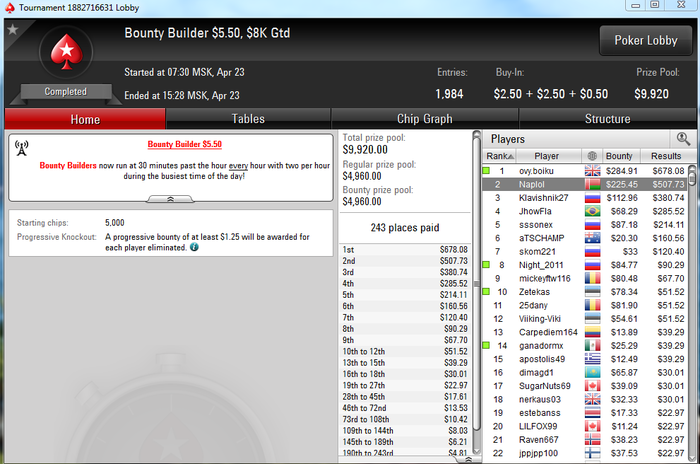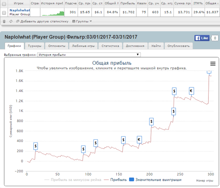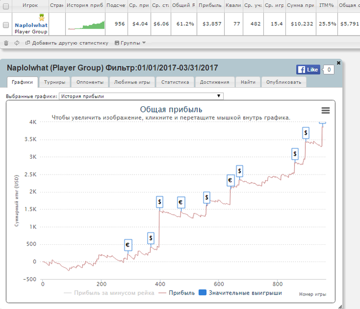 Профит 964, набаинился на 2200, сыграл 301 турнир, аби 7.3, рои соответственно 43%
