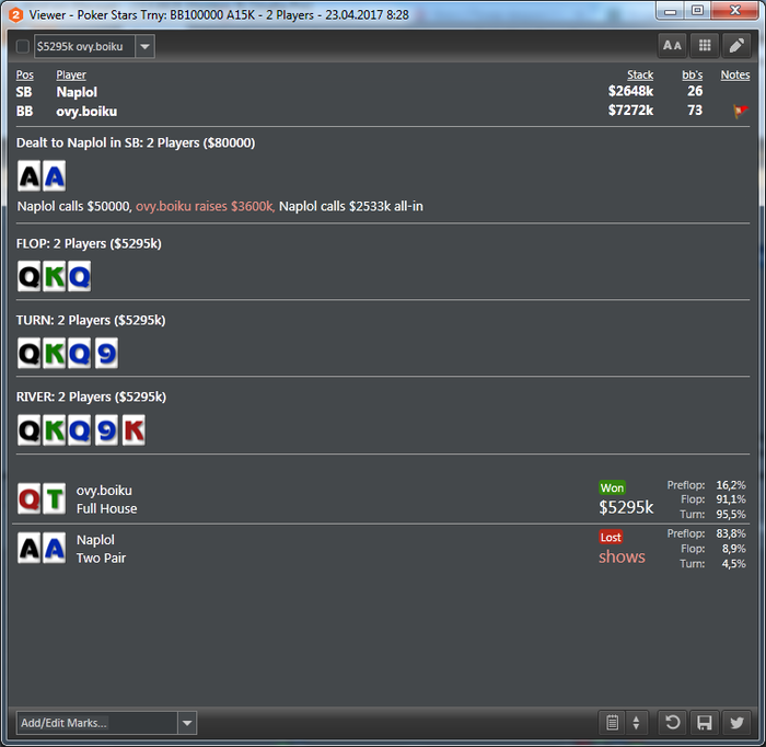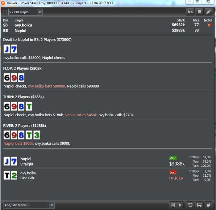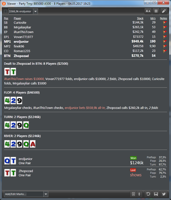 Также чувствую необходимость поработать над своим психологическим состоянием, было несколько сессий где тильтовал и не грузился до конца. В последнее время очень волнуюсь за проигранные раздачи, переезды, перекупы, хотя это и абсолютно рабочие моменты, но после этого достаточно трудно собраться и играть свою нормальную игру.