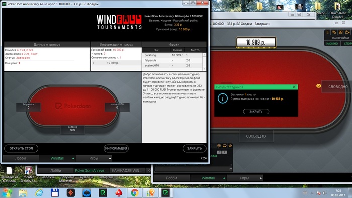Сегодня поступили деньги (Бекинг) в размере $15 от игрока который захотел остаться в тени на турниры по $7.5 - Возрастающие награды и Билдер. К сожалению оба оказались за бортом ИТМ((((